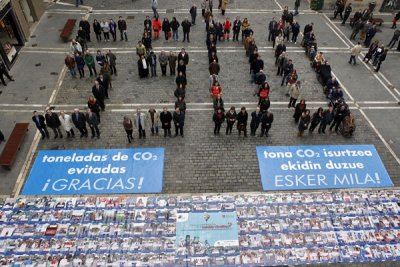 By extrapolating to the 1,000 participants of the campaign, the ENGAGE participative communications campaign in Pamplona enabled a reduction of 5,500 tonnes of CO2 emissions in a year. The energy monitoring highlighted the need to focus on private transport, representing 27% of citizens’ emissions. Besides, the very good results of the four local companies demonstrated that stakeholders can save a significant amount of energy if they all get involved. To celebrate the campaign’s achievements, participants gathered on the town hall square to form the figure of 5,500. With this is an excellent result, Pamplona, who signed the Covenant of Mayors in 2009, are proving that ENGAGE is an efficient tool to help Covenant signatories reach their energy and climate objectives. |