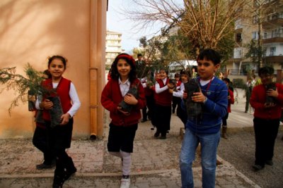 - On the second day, the staff has a short presentation to pupils about climate change. All pupils then plant a tree in their school garden with Syrian pupils. At the end of the day tree seeds are given to all pupils as a gift. Photo’s are then taken of these activities and ENGAGE posters produced.